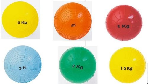 Geriffelter Ball mit doppelter Hülle - Ideal für das Einüben von Würfen drinnen und draußen. Seine äußere geriffelte Hülle ist aus elastischem PVC, was die Aufprälle dämpft und die Wiederstandsfähigkeit erhöht. Aufgrund dessen, dass der Schwerpunkt des Balles genau in der Mitte liegt, besitzt er ein hervorragendes Gleichgewicht. Durchmesser 100 mm, Gewicht 1,5 kg.
